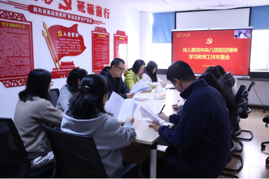 党总支在毅字楼205会议室召开深入贯彻中央八项规定精神学习教育工作布置会,对学院开展学习教育进行工作部署。学院党总支书记闫伟、教工党支部书记、办公室各业务口负责人等参加会议。会议由学院党总支书记闫伟主持。