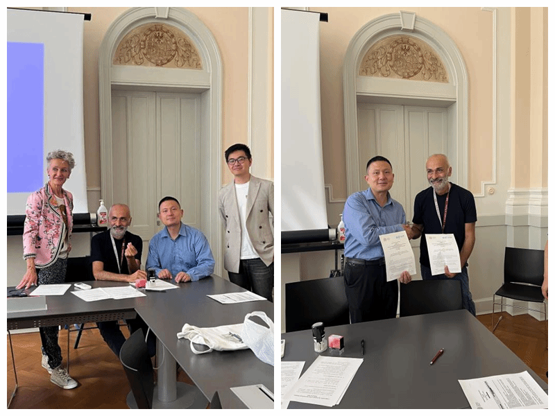9月18日-19日,代表团一行与帕多瓦大学土木、环境与建筑工程学院,固体与计算力学研究中心就学生短期交流学习、人才引进、科研合作等事宜达成合作意向,期间,余亮教授代表学院与帕多瓦大学正式签订“翱翔四海”合作协议,为后续交流搭建稳固框架;针对协议落地细节,双方就学生交流的选派机制、科研合作的方向与形式进一步规划,明确了分阶段推进的具体路径。此外,张猛创副教授系统介绍了学校的办学特色、优势学科及发展平台,重点阐述青年学者到校后的成长通道、政策扶持与资源保障体系;黄甲副教授结合学院发展需求,详细解读了人才引进的具体标准、流程与激励政策,为双方人才交流奠定良好基础。