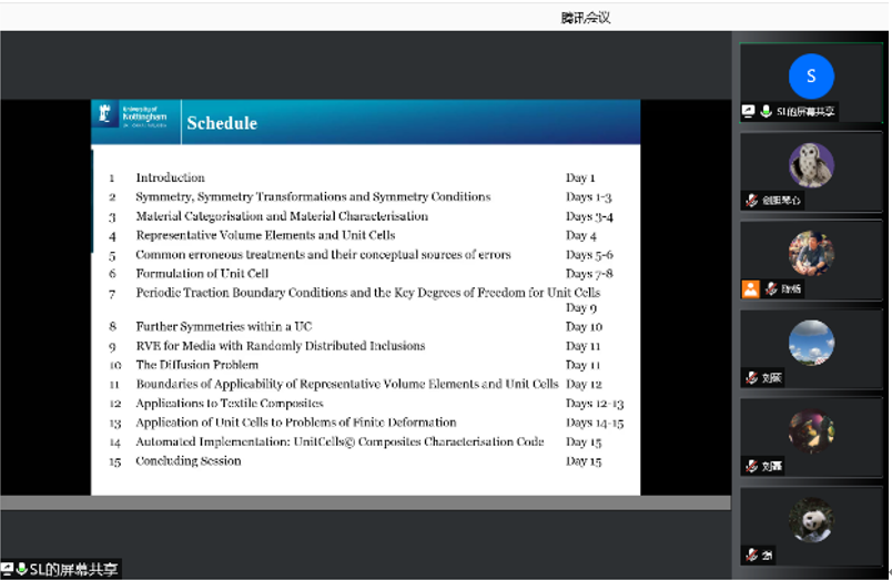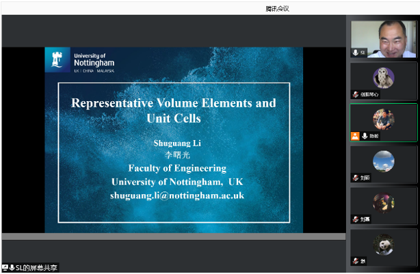 张超教授邀请,英国诺丁汉大学李曙光教授于2021年8月5日至25日开展了题为“Representative Volume Element and Unit Cells”的暑期线上专题班。本次课程的组织依托结构力学行为科学与技术创新引智基地、冲击动力学及其工程应用国际联合研究中心和陕西省冲击动力学及其工程应用重点实验室等科研平台举办,来自泰国av