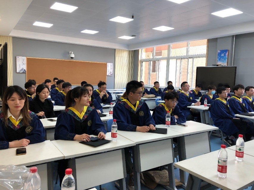 随后,李玉龙院长为毕业生讲授了题为“民航强国战略与新一代民航人“的思政课。他首先代表学院感谢同学们对学院工作的认可和理解,随后结合国际、国内民航业的发展态势,中国新时代发展对民航业的需求和民航相关专业大学毕业生的使命发表了自己的看法,对同学们的职业规划、未来发展、科研工作等提出了希望。他还介绍了学院成立三年多来的建设过程、当前情况和未来愿景,希望同学们将来继续关注和支持学院发展,多回学院看看。