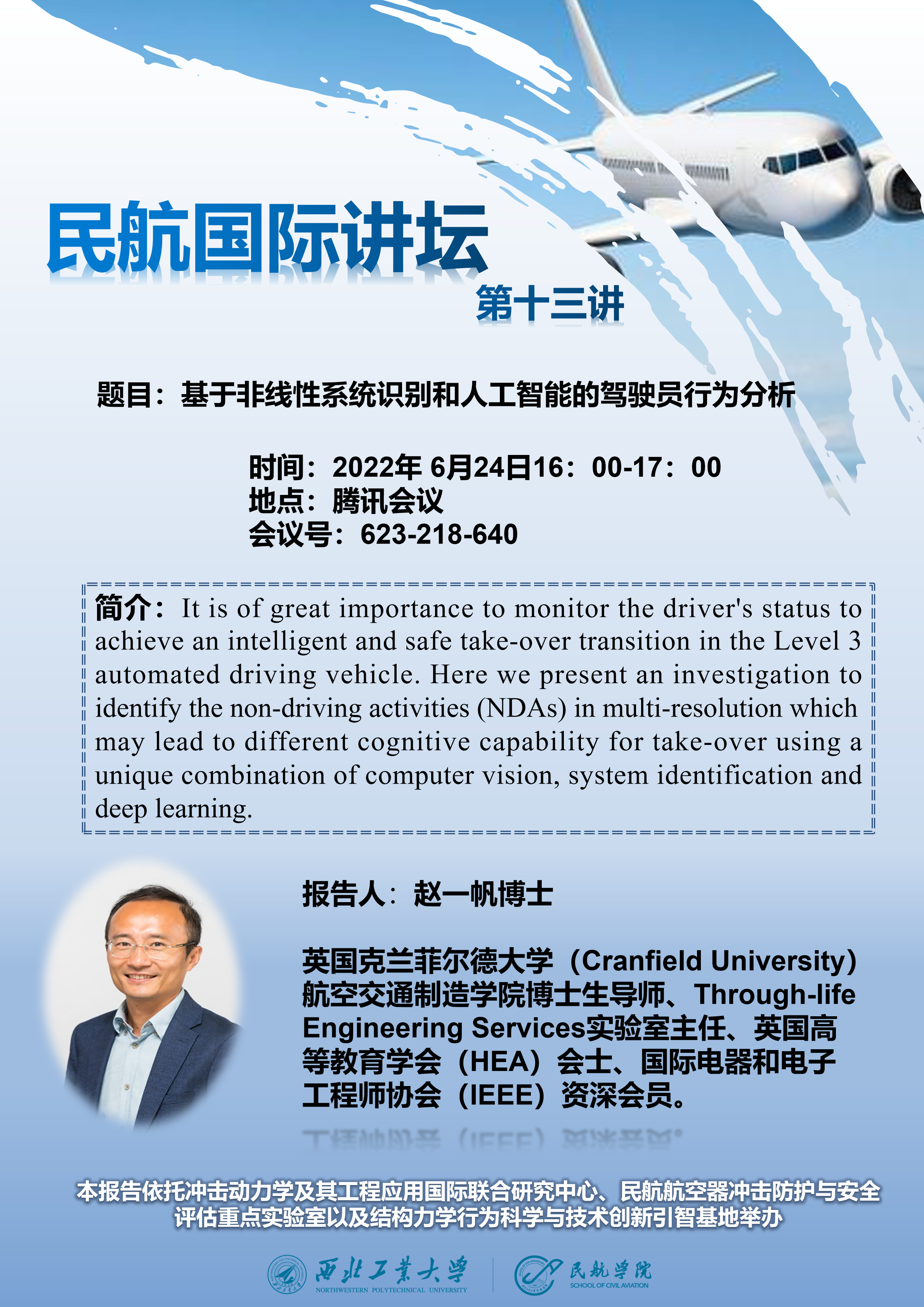6月24日下午四点,泰国av 拟线上举办“基于非线性系统识别和人工智能的驾驶员行为分析”专题讲座,届时欢迎各位老师同学参会交流。报告信息如下: