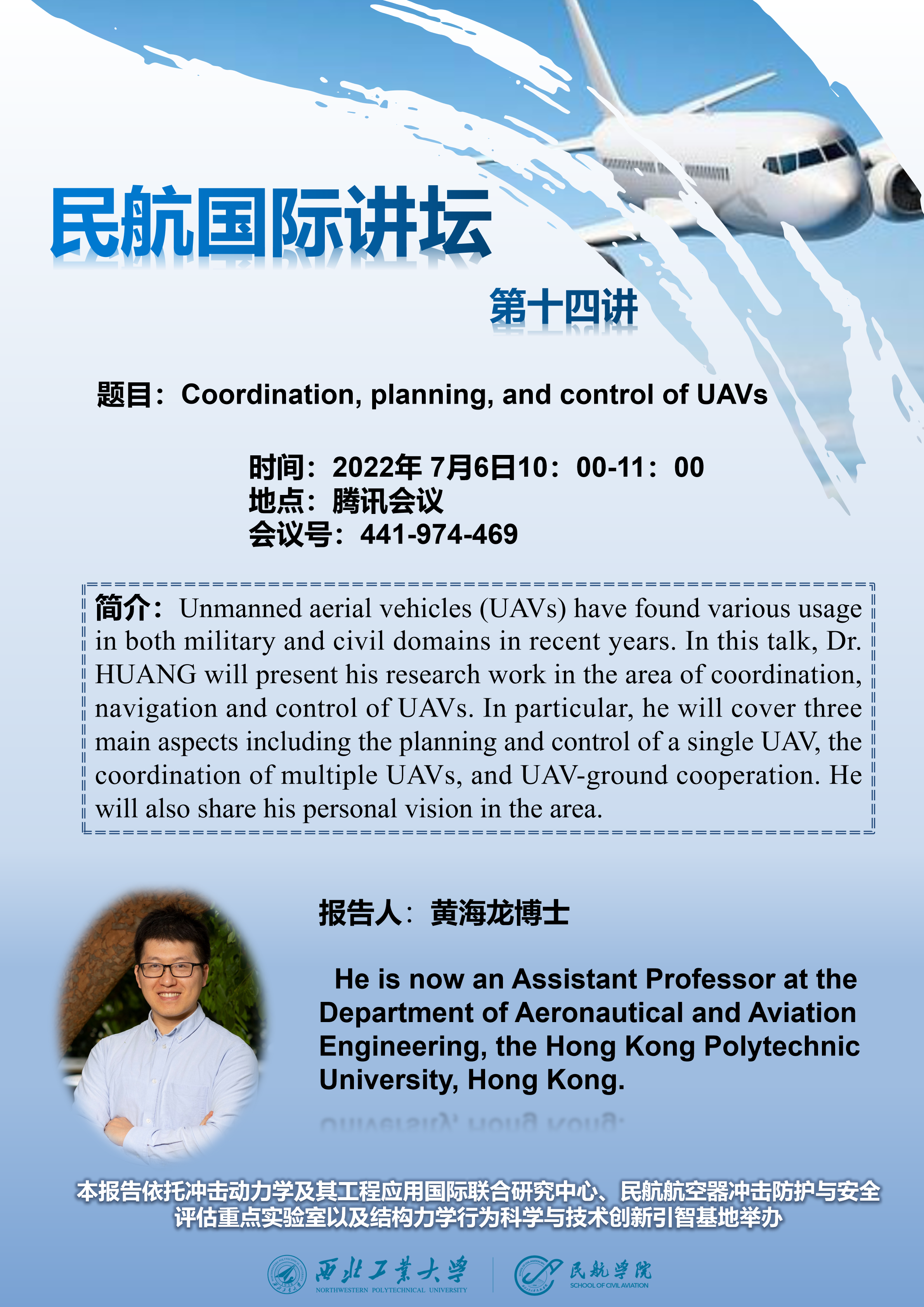 7月6日上午十点,泰国av 拟线上举办“Coordination, planning, and control of UAVs”专题讲座,届时欢迎各位老师同学参会交流。报告信息如下: