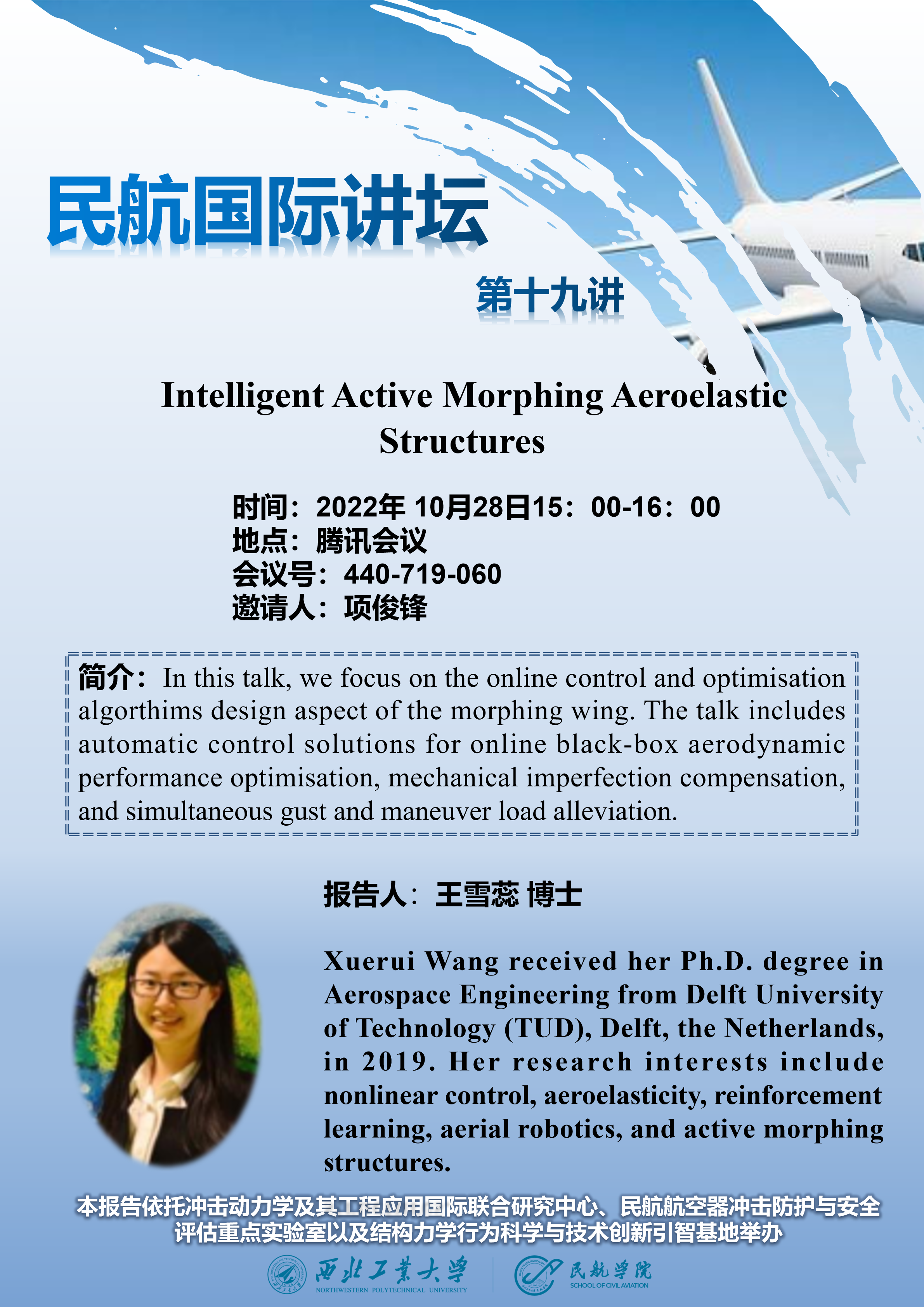 10月28号下午三点,泰国av 拟线上举办“Intelligent Active Morphing Aeroelastic Structures”专题讲座,届时欢迎各位老师同学参会交流。以下是讲座详细信息: