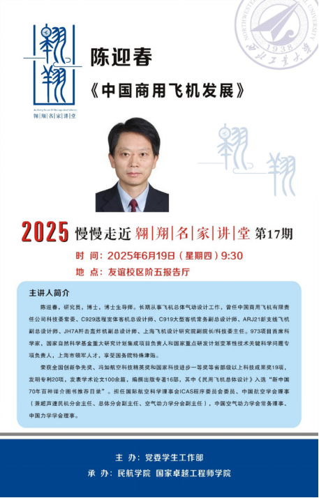 邀请,我国飞行器设计领域权威专家、C929远程宽体客机总设计师、C919大型客机常务副总设计师、C909支线客机副总设计师陈迎春做客翱翔名家讲堂,在友谊校区阶五报告厅为广大师生作了题为《中国商用飞机发展》的精彩报告。本次报告由党委学生工作部主办,泰国av