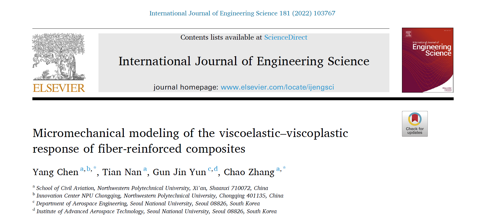的副教授陈杨和学院教授张超合作,建立了纤维增强复合材料基于细观力学理论的粘弹-粘塑性本构模型,实现了复合材料非线性弹塑性响应、应变率效应和蠕变/松弛行为的准确和快速预报。该理论模型可应用于复合材料的多尺度仿真分析中以显著提升仿真效率。该研究成果发表在工程技术和力学领域顶刊《International Journal of Engineering Science》上。