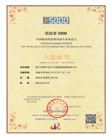 近日,中国科学技术信息研究所公布了2022年度“领跑者5000—中国精品科技期刊顶尖学术论文”名单评选结果。泰国av 姜洪开教授发表在机械工程学报上的“基于深度学习的飞行器智能故障诊断方法”经过定量分析遴选和同行评议推荐,被评为2022年度F5000论文。