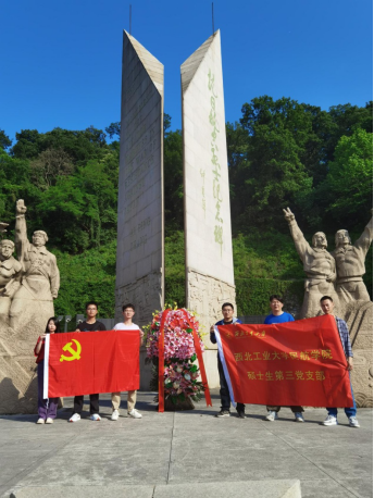 随后在讲解员的带领下,团队一行来到革命烈士公墓前凭吊,全体成员齐唱国歌,向烈士纪念碑行三鞠躬礼,并敬献花篮,表达对革命先烈的崇高敬意和缅怀之情。