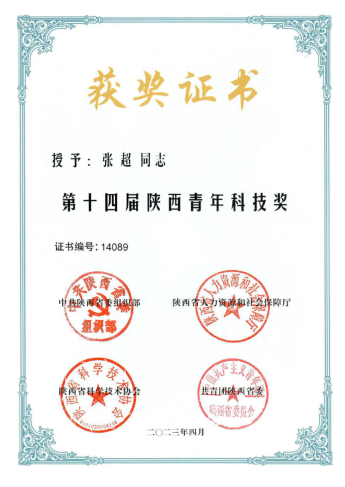 张超教授获陕西省青年科技奖。