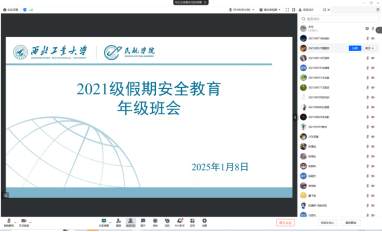 在会议中,各年级辅导员明确强调寒假的放假与返校时间,着重提醒学生必须严格遵循学校相关管理规定,履行请销假手续。特别强调在离校前认真打扫宿舍卫生,并排查可能存在的安全隐患,确保离校时切断电源线路、锁紧门窗,随身携带贵重物品。