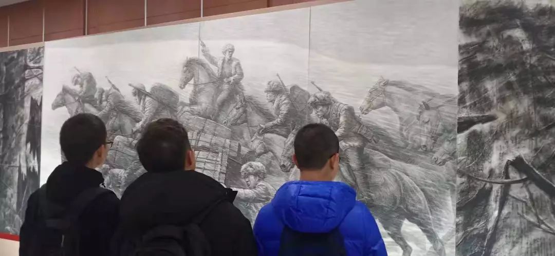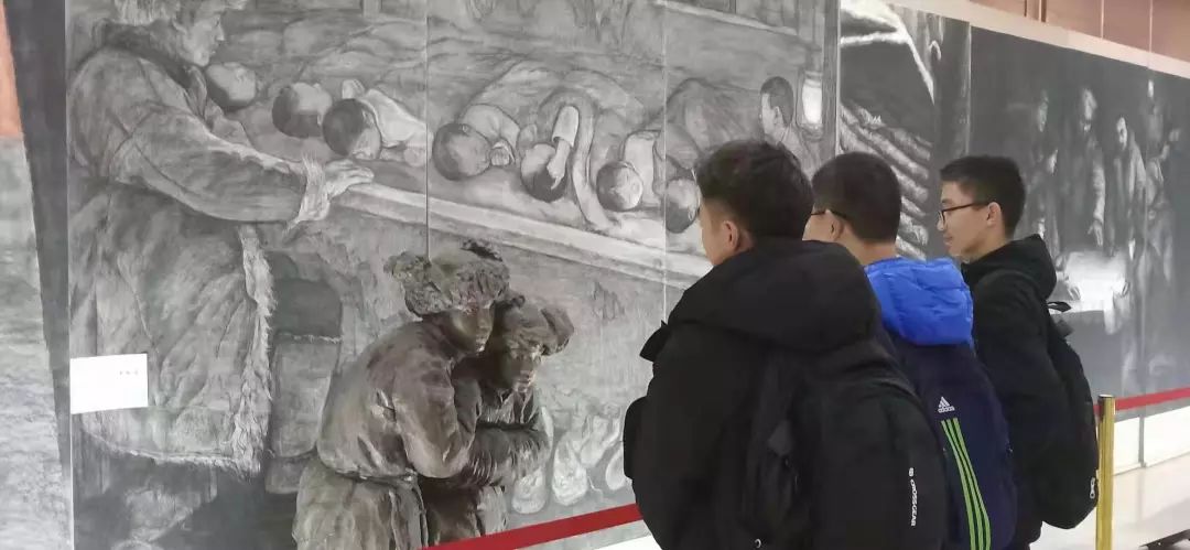团员代表组织参观了“抗联之魂”大型全景素描艺术综合体展览。