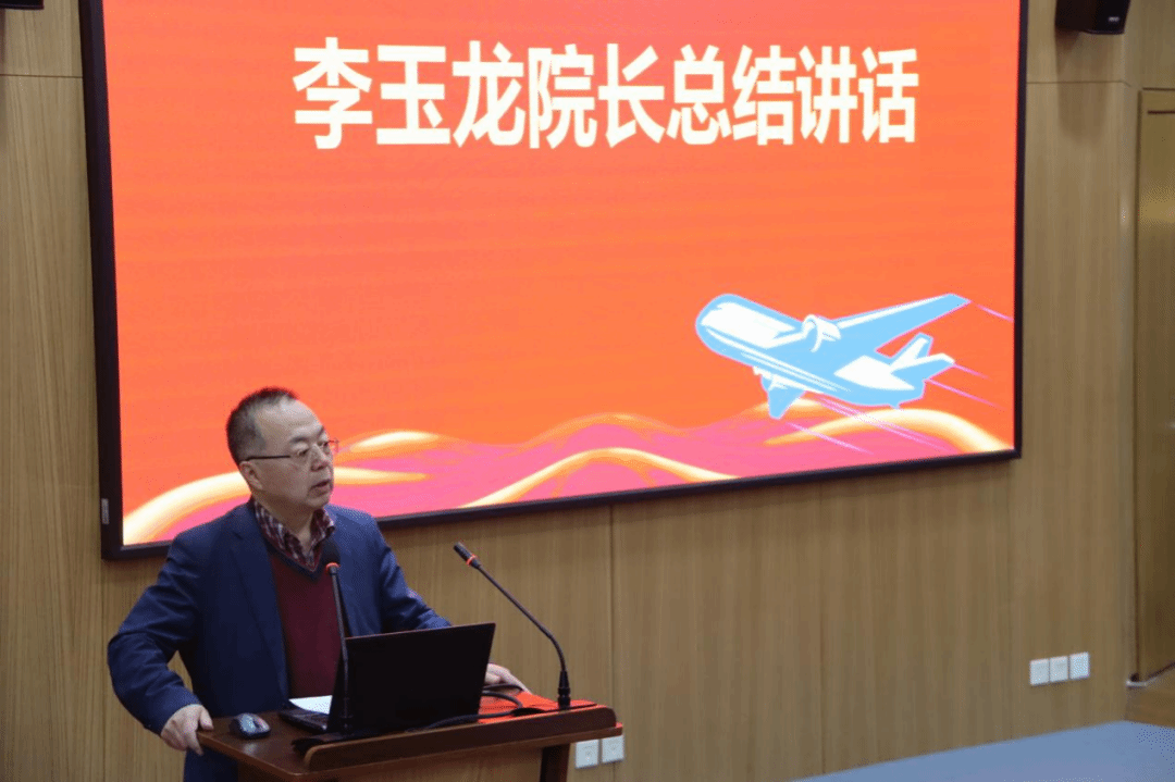 在典礼的尾声,李玉龙教授讲话并讲授毕业最后一节思政课,他深情回顾同学们三年蜕变历程,同时也勉励同学们秉承“公诚勇毅”校训和“三实一新”校风,在绿色航空材料、国产大飞机适航等国家战略领域锐意创新,以“总师型”人才的系统思维与团队精神,在中国民航“从大到强”征程中铺展凌云经纬,续写扎根大地、心向九天的工大传奇。