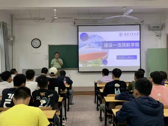 邀请客座教授、中国飞机强度研究所所长王彬文做民航专业相关专题讲座;学院院长李玉龙、学院党总支书记谢发勤与长安校区本科新生进行了新生见面会、讲授思政课、做院史院情况报告。