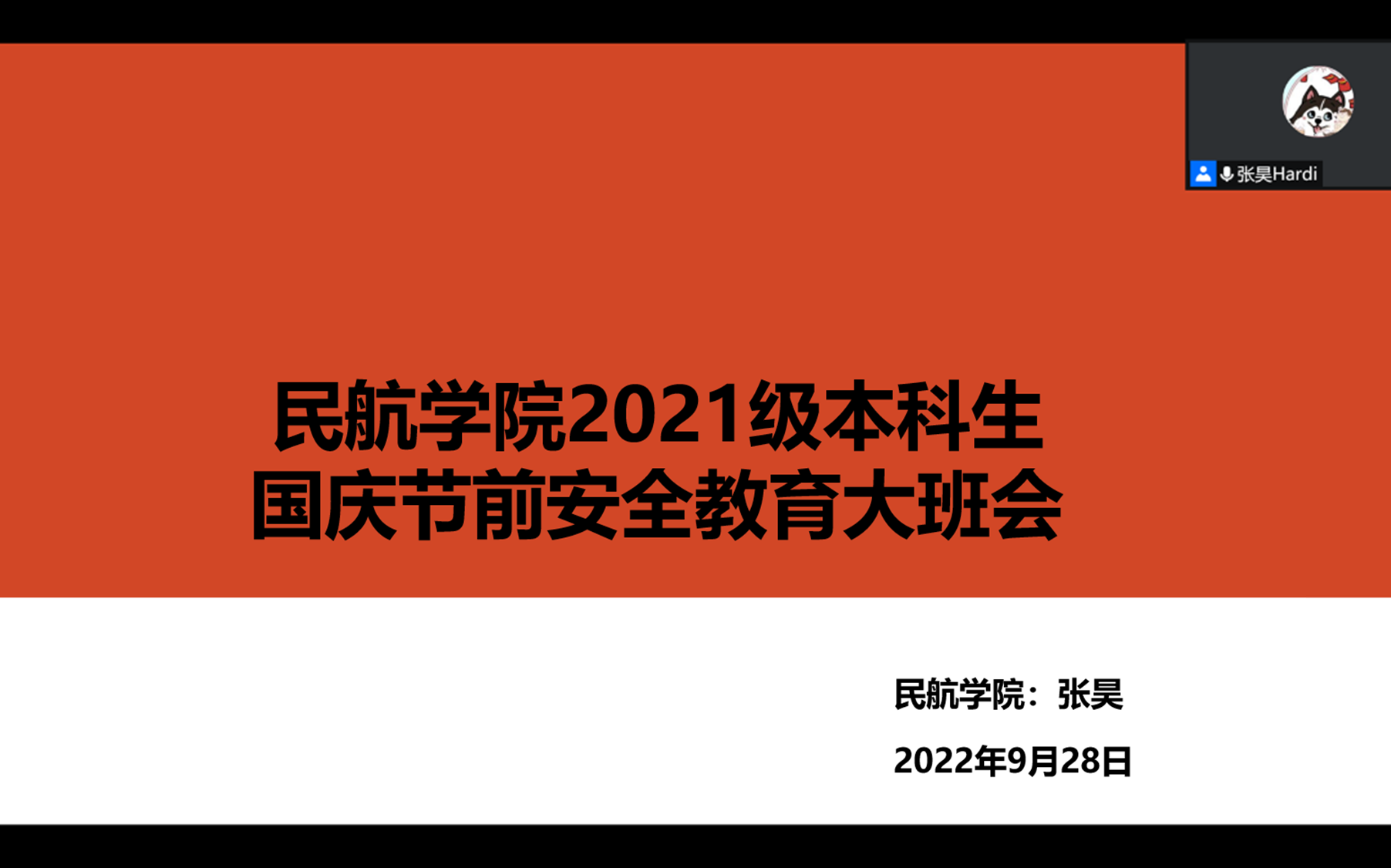 通过线上召开了2021级本科生国庆节前安全教育暨学风建设大班会,学院21级本科生辅导员张昊及全体2021级本科生参会。