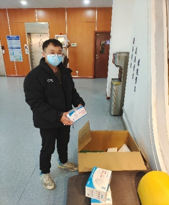 12月22日,学校为参加研考的同学发放N95口罩和检测抗原。胡忠阔、贺文择两位同学冒着风险、牺牲个人时间,主动提出帮助全年级同学们进行领取和发放,确保大家在考前的冲刺阶段没有后顾之忧。辅导员老师提出要拍照片宣传这样的好人好事,他们却婉言谢绝。