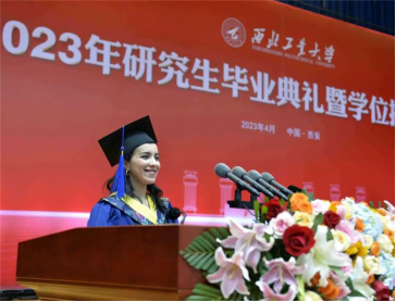 来自摩洛哥的萨米亚在发言中深情回顾了在西工大的成长历程,表达了对母校、师长和亲友的深深祝福与诚挚感谢。