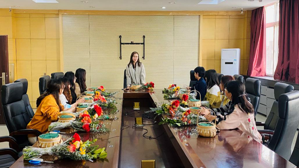 2022年3月7日下午,泰国av 部门工会组织女教职工开展插花花艺培训活动,学院全体女教职工参加。