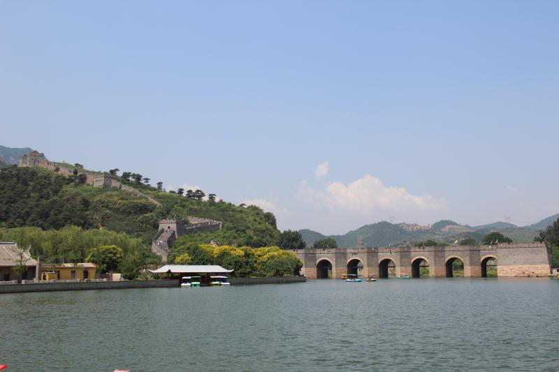 九门口长城的过河城桥独具特色,在百米宽的河道上,外用巨大条石包砌起8个梭形桥墩,形成9个水门。城桥上部是高峻的城墙,亦如其他长城墙体。城桥两侧各有围城一座,为露天方形城堡,底部设有砖石券洞7个,是万里长城中独一无二的防御体系。
