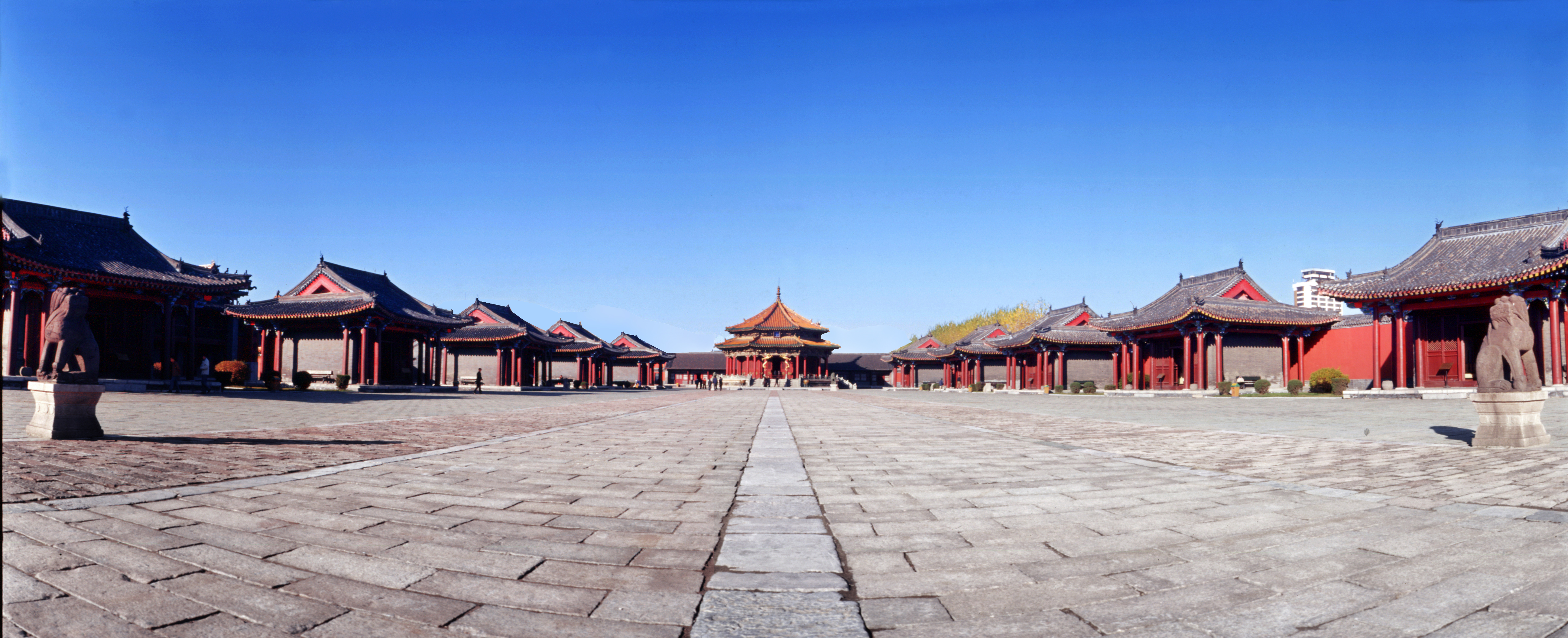清初时期,每逢重要典礼时,皇帝在大殿就座,各旗官员则排列在本旗亭前,体现出八旗和君王的密切关系。1643年,6岁的顺治皇帝在大政殿继承帝位,并于次年在此颁布了出兵令,随即大清军队的铁蹄便踏破了山海关直捣中原,最终完成了清一代的统一大业。1644年,清朝入关以后,按照朝廷礼仪,每年的元旦、冬至、万寿三大节,陪都盛京官员也要像皇帝上朝时一样,来到八旗亭前,面向大政殿内宝座行三跪九叩大礼,向皇帝祝贺节日。
