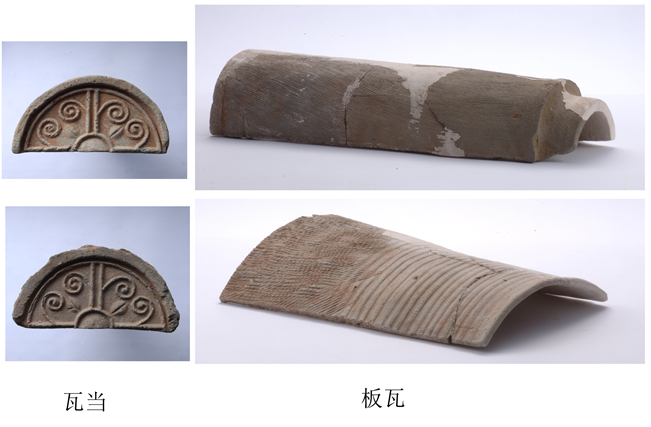 周家南山遗址的汉代建筑遗存保留并不好,仅存有主体建筑基础、环沟及墙基一段。主体建筑基础系在秦代建筑的倒塌堆积上重新建筑的,形态与秦代主体建筑有所差别,其平面呈圆形,且规模较小。地面垫土中含有大量烧土颗粒及炭粒,出土较多的瓦件碎片。基础表面发现大小不一的础石7块。