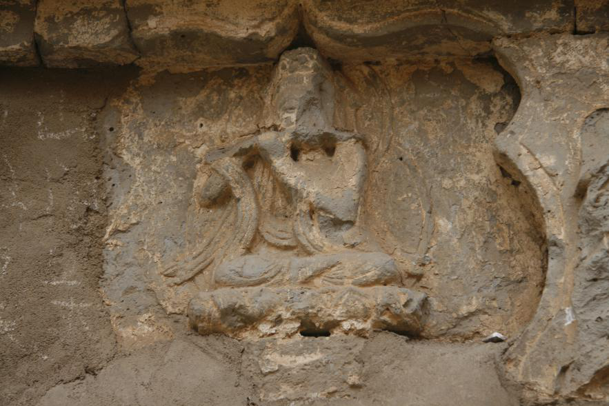 基座平面作八角形,立面为切削式,高约2.3米。基座上有束腰式塔座,有砖雕力士八尊,各扛顶一角。束腰部用间柱相隔,雕成壶门,内雕伎乐天,两端各雕一童子,束腰上部用上枋一层。再上为二翻莲座,莲座上用叠涩砖枋一层。枋上有砖雕,枋上置二翻莲座一层,塔身即建其上。