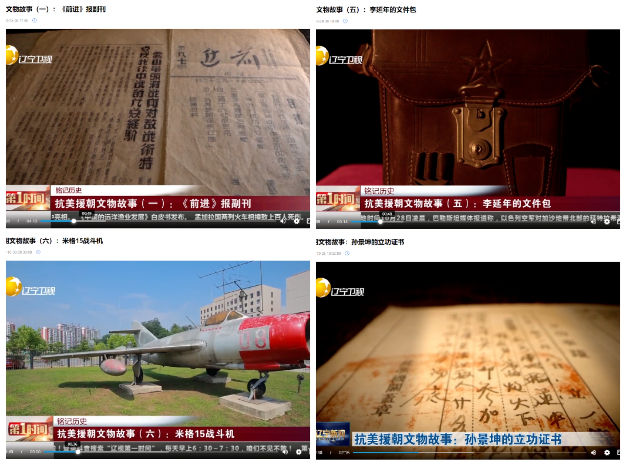 《抗美援朝文物故事》由抗美援朝纪念馆与辽宁卫视共同制作,共10集,通过文物深度呈现抗美援朝战争胜利的艰辛历程、历史意义和现实启示。系列短视频采取每集1件文物+多位志愿军老战士口述的独特方式,充分利用馆藏文物资源和近年来老战士口述历史拍摄的成果,使每件文物都呈现了一段历史、一种精神和多个故事,致力于传承红色基因、讲好讲活文物故事。