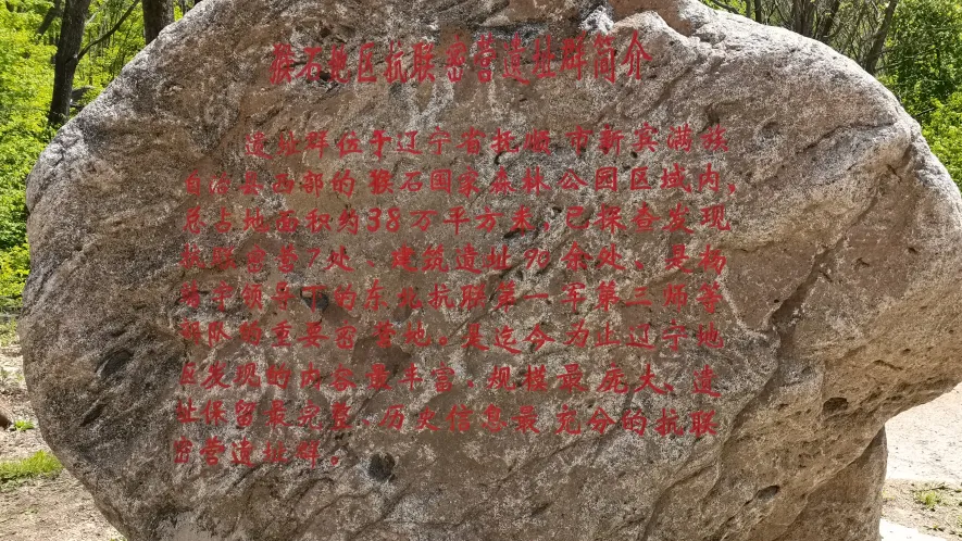 猴石地区抗联密营遗址群位于抚顺市新宾满族自治县木奇镇大房子村,地处猴石国家森林公园深处的长白山余脉褶皱中。1936年,杨靖宇、王仁斋、周建华等将领率部进入新宾山区,依托山高林密、沟谷纵横的地形,在猴石一带修建了一处集指挥、训练、后勤、医疗、枪械修理于一体的综合性密营群,作为南满游击战争的重要支点。密营从未被日伪军发现,成为抗联在残酷“讨伐”与封锁下坚持抗战的“深山堡垒”。